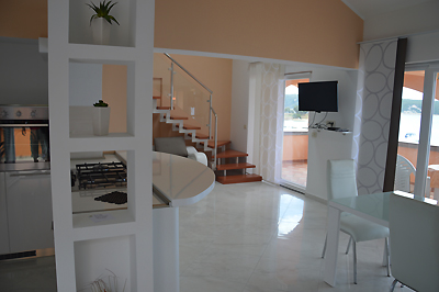 Apartment 6 is a one-bedroom apartment with a capacity for 2+3 people, ideal for couples or smaller groups seeking a more intimate setting. – Kitchen with dinningroom and livingroom, – One bedroom, – Showerroom, – Large Terasse, – TV – SAT – Dishwasher